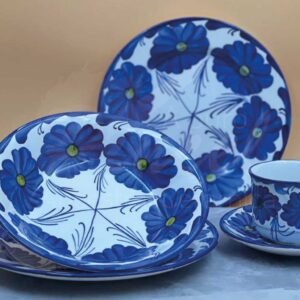 El Puesto de Vajilla esta compuesto por 5 piezas de cerámica hecha 100% a mano por artesanos de El Carmen de Viboral (Antioquia – Colombia)